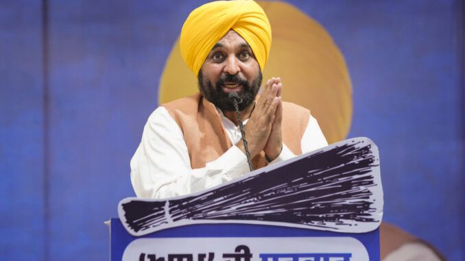 **EDS: THIRD PARTY IMAGE** In this image released by @BhagwantMann via X on June 7, 2025, Punjab Chief Minister and AAP leader Bhagwant Mann addresses a rally in support of party candidate Sanjeev Arora ahead of the upcoming Ludhiana West Assembly constituency bypoll, in Punjab. (@BhagwantMann via PTI Photo)(PTI06_07_2025_000398B)