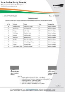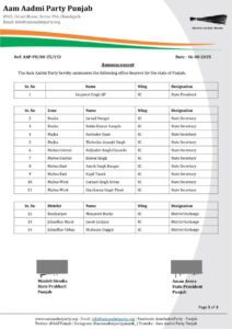 Aam Aadmi Party (AAP) announces new office bearers in Punjab, see the full list.