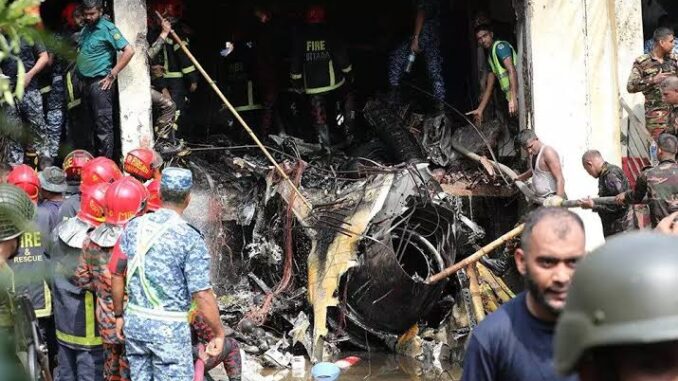 A Bangladesh Air Force training jet crashed into a school building in Dhaka’s Uttara area on Monday, killing at least 19 people, most of them children, and injuring many others.