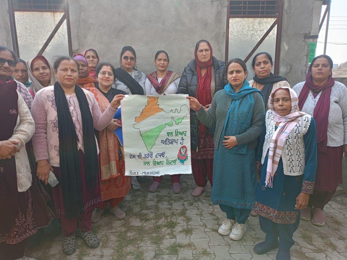 ਇਸੇ ਲੜੀ ਵਿੱਚ ਅੱਜ ਜ਼ਿਲ੍ਹੇ ਦੇ ਬਲਾਕ ਮੁਕੇਰੀਆਂ ਵਿੱਚ ਜ਼ਿਲ੍ਹਾ ਪ੍ਰੋਗਰਾਮ ਅਫ਼ਸਰ ਗਗਨਦੀਪ ਸਿੰਘ ਦੀ ਅਗਵਾਈ ਹੇਠ ਬਾਲ ਵਿਆਹ ਜਾਗਰੂਕਤਾ ਕੈਂਪ ਲਗਾਇਆ ਗਿਆ। ਇਸ ਕੈਂਪ ਵਿੱਚ ਵੱਡੀ ਗਿਣਤੀ ਵਿੱਚ ਸਥਾਨਕ ਨਾਗਰਿਕਾਂ, ਮਾਪਿਆਂ, ਨੌਜਵਾਨਾਂ ਅਤੇ ਵਿਦਿਆਰਥੀਆਂ ਨੇ ਹਿੱਸਾ ਲਿਆ।