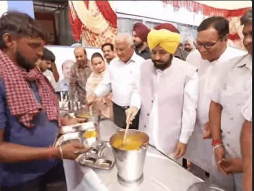 CM Mann Served Food to Farmers-Labourers in Sangrur: Gifted a Kitchen Started in Grain Market, New Tehsil and PSPCL Office.