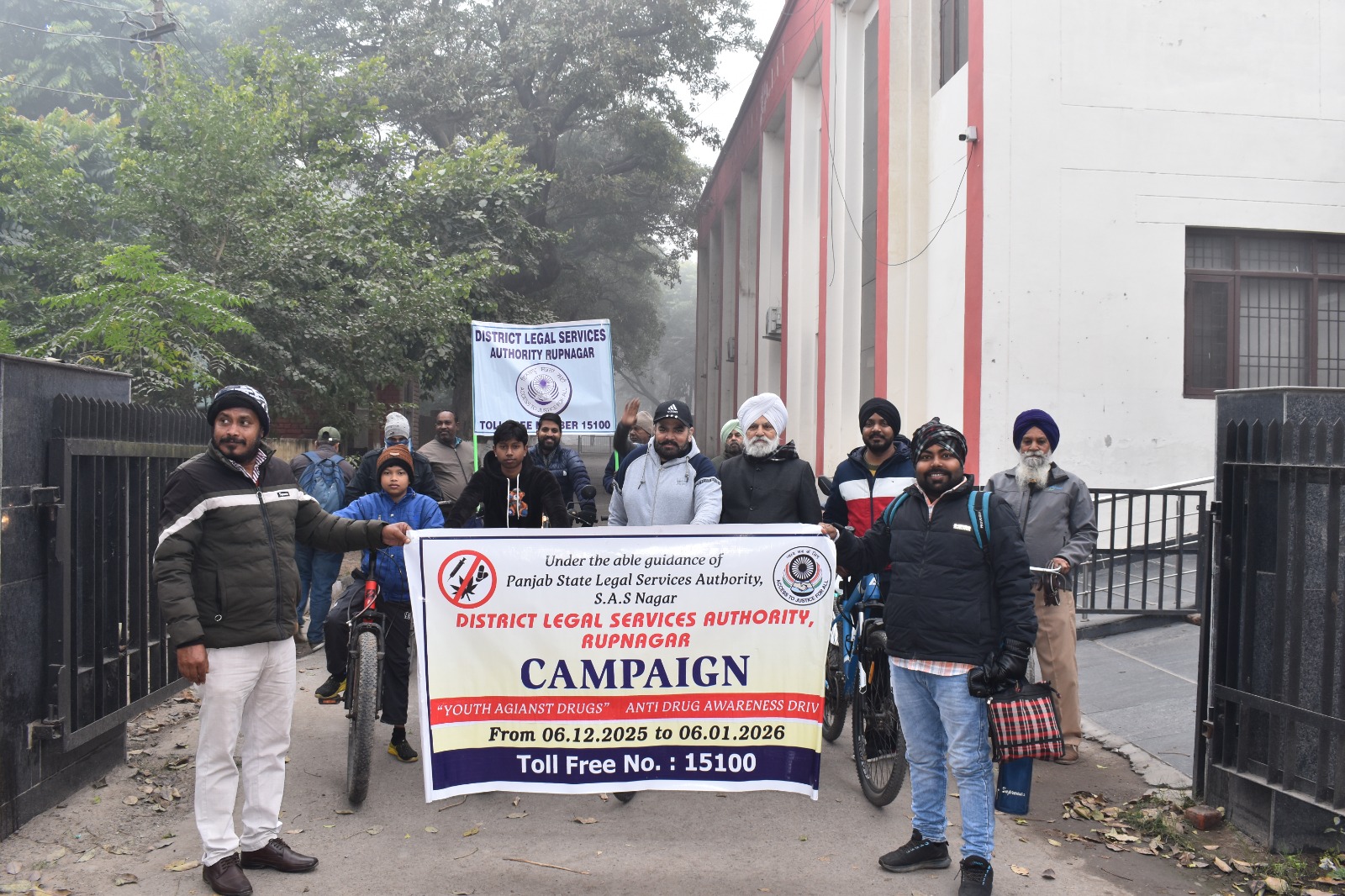 ਰੂਪਨਗਰ, 29 ਦਸੰਬਰ: ਮੈਂਬਰ ਸਕੱਤਰ ਪੰਜਾਬ ਰਾਜ ਕਾਨੂੰਨੀ ਸੇਵਾਵਾਂ ਅਥਾਰਟੀ, ਐਸ.ਏ.ਐਸ ਨਗਰ ਅਤੇ ਜ਼ਿਲ੍ਹਾ ਅਤੇ ਸੈਸ਼ਨ ਜੱਜ ਸ਼੍ਰੀਮਤੀ ਮਨਜੋਤ ਕੌਰ ਦੇ ਨਿਰਦੇਸ਼ਾਂ ਹੇਠ ਜ਼ਿਲ੍ਹਾ ਕਾਨੂੰਨੀ ਸੇਵਾਵਾਂ ਅਥਾਰਟੀ ਵੱਲੋਂ ਅੱਜ ਨਸ਼ਿਆਂ ਖਿਲਾਫ਼ ਚੱਲ ਰਹੀ ਮੁਹਿੰਮ ਤਹਿਤ ਅੱਜ ਜ਼ਿਲ੍ਹਾ ਕਚਹਿਰੀਆਂ ਤੋਂ ਲੈ ਕੇ ਹੈੱਡ ਵਰਕਸ ਤੱਕ ਸਾਈਕਲ ਅਤੇ ਮੋਟਰਸਾਈਕਲ ਰੈਲੀ ਕੱਢੀ ਗਈ।