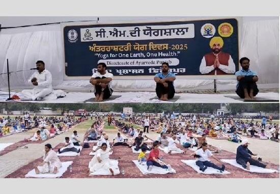 Over 500 people gathered at Cantonment Stadium in Ferozepur Cantt to celebrate the 11th International Yoga Day with great enthusiasm. The event was part of the “CM di Yogshala” initiative, which offers free yoga classes across Punjab. This year’s theme, “Yoga for One Earth, One Health,” focused on promoting both personal well-being and a healthy environment.