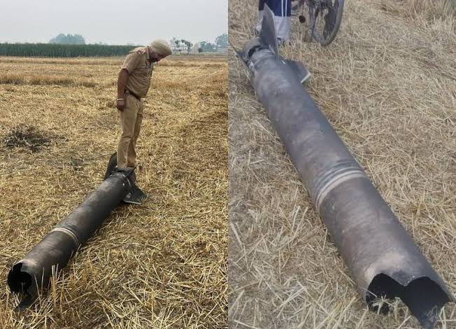 A 5-feet-long missile part was found in the fields of Baldev Singh and Makhan Singh. ਪੁਲਿਸ said it’s still not clear if the missile was from ਭਾਰਤ or Pakistan.