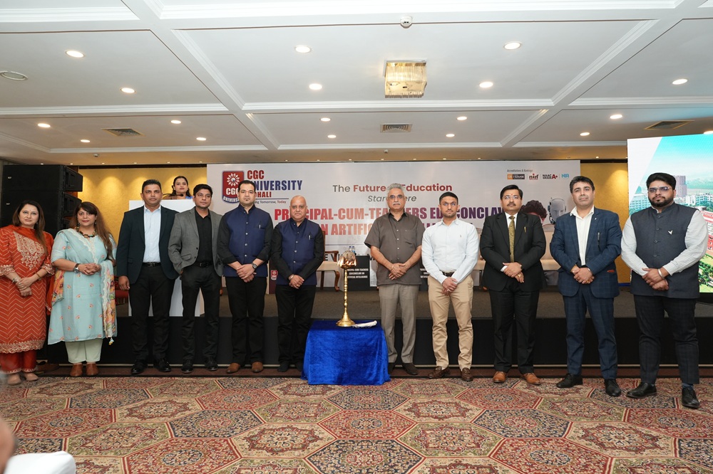 ਮੋਹਾਲੀ: ਸੀਜੀਸੀ ਯੂਨੀਵਰਸਿਟੀ ਮੋਹਾਲੀ ਦੁਆਰਾ ਪ੍ਰਿੰਸੀਪਲ-ਕਮ-ਅਧਿਆਪਕ ਐਜੂਕਾਂਕਲੇਵ ਦਾ ਆਯੋਜਨ ਕੀਤਾ ਗਿਆ, ਜਿਸ ਵਿੱਚ ਆਰਟੀਫੀਸ਼ਲ ਇੰਟੈਲੀਜੈਂਸ ਦਾ ਸਿੱਖਿਆ ’ਤੇ ਪੈਣ ਵਾਲੇ ਅਸਰਾਂ ’ਤੇ ਵਿਚਾਰ ਕੀਤਾ ਗਿਆ। ਇਸ ਸਮਾਗਮ ਵਿੱਚ ਅਕਾਦਮਿਕ ਮਾਹਿਰਾਂ, ਅਧਿਆਪਕਾਂ ਅਤੇ ਸਿੱਖਿਆ ਖੇਤਰ ਨਾਲ ਜੁੜੇ ਵਿਸ਼ੇਸ਼ ਵਿਅਕਤੀਆਂ ਨੇ ਭਾਗ ਲਿਆ।