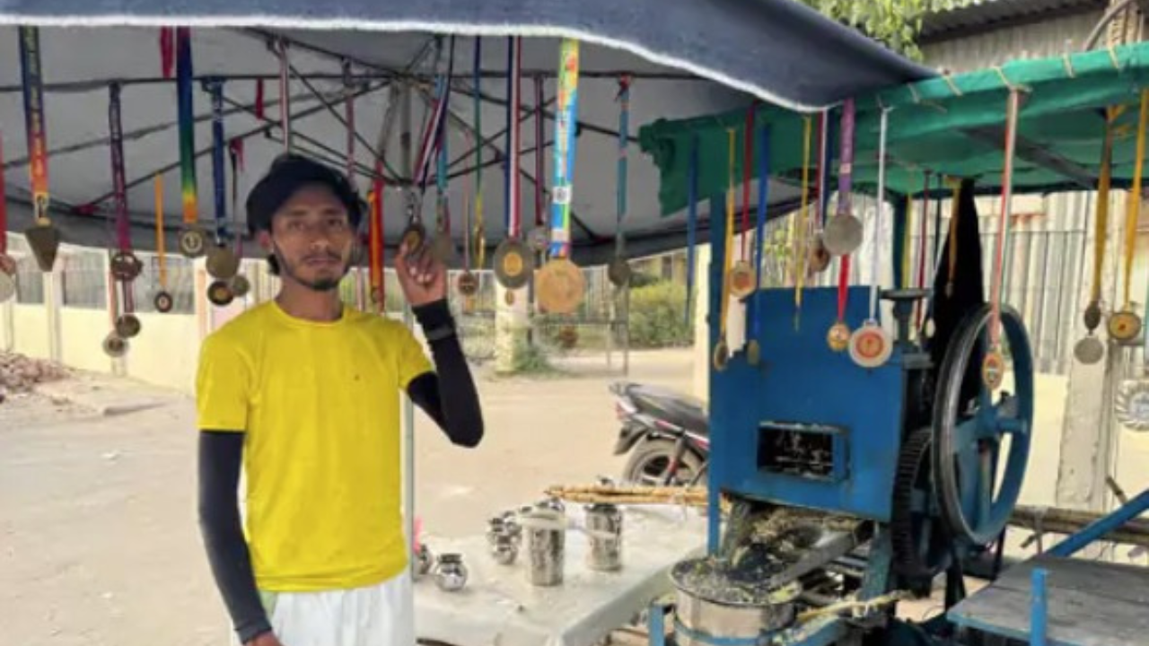 National-level athlete Deepak Kumar, 22, is currently selling sugarcane juice near the District Administrative Complex, braving the intense 44°C heat. Despite his impressive achievements in athletics, Deepak finds himself without a stable job or financial support.