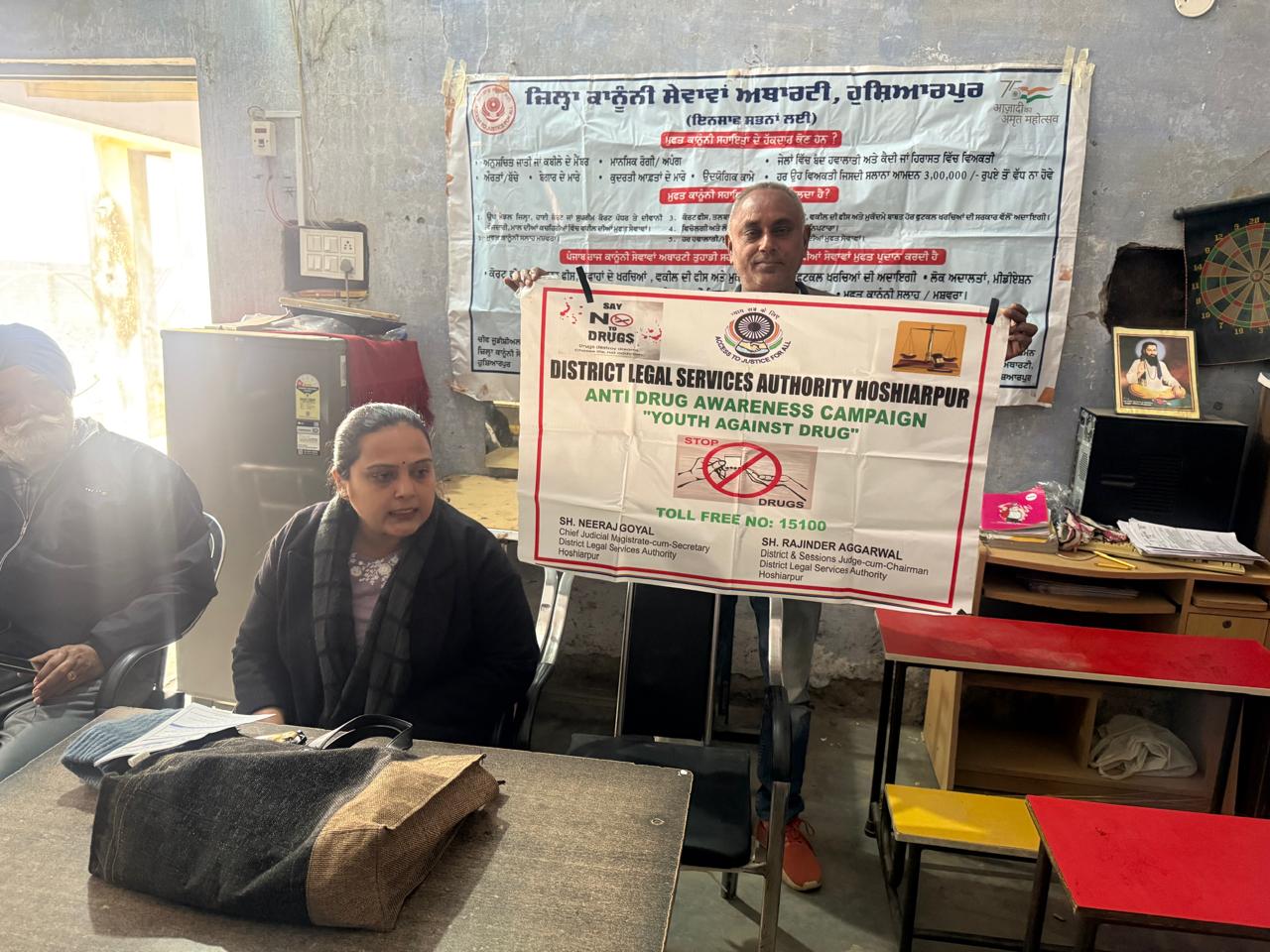 ਜ਼ਿਲ੍ਹਾ ਕਾਨੂੰਨੀ ਸੇਵਾਵਾਂ ਅਥਾਰਟੀ ਹੁਸ਼ਿਆਰਪੁਰ ਵੱਲੋਂ ਪੰਜਾਬ ਰਾਜ ਕਾਨੂੰਨੀ ਸੇਵਾਵਾਂ ਅਥਾਰਟੀ ਐਸ.ਏ.ਐਸ ਨਗਰ ਦੇ ਦਿਸ਼ਾ-ਨਿਰਦੇਸ਼ਾਂ ਅਤੇ ਜ਼ਿਲ੍ਹਾ ਤੇ ਸੈਸ਼ਨ ਜੱਜ ਰਜਿੰਦਰ ਅਗਰਵਾਲ ਦੇ ਹੁਕਮਾਂ ਦੀ ਪਾਲਣਾ ਕਰਦੇ ਹੋਏ ਨੌਜਵਾਨਾਂ ਨੂੰ ਨਸ਼ਿਆਂ ਤੇ ਹੋਰਨਾਂ ਅਲਾਮਤਾਂ ਤੋਂ ਬਚਾਅ ਕੇ ਨਰੋਏ ਸਮਾਜ ਦੀ ਸਿਰਜਣਾ ਲਈ ਹੁਸ਼ਿਆਰਪੁਰ ਜ਼ਿਲ੍ਹੇ ਵਿੱਚ ਵਿਆਪਕ ਜਾਗਰੂਕਤਾ ਮੁਹਿੰਮ ਚਲਾਈ ਗਈ ਹੈ, ਜਿਸ ਤਹਿਤ ਜ਼ਿਲ੍ਹੇ ਦੇ ਪਿੰਡ-ਪਿੰਡ ਪਹੁੰਚ ਕੇ ਜਾਗਰੂਕਤਾ ਪ੍ਰੋਗਰਾਮ ਕਰਵਾਏ ਜਾ ਰਹੇ ਹਨ।