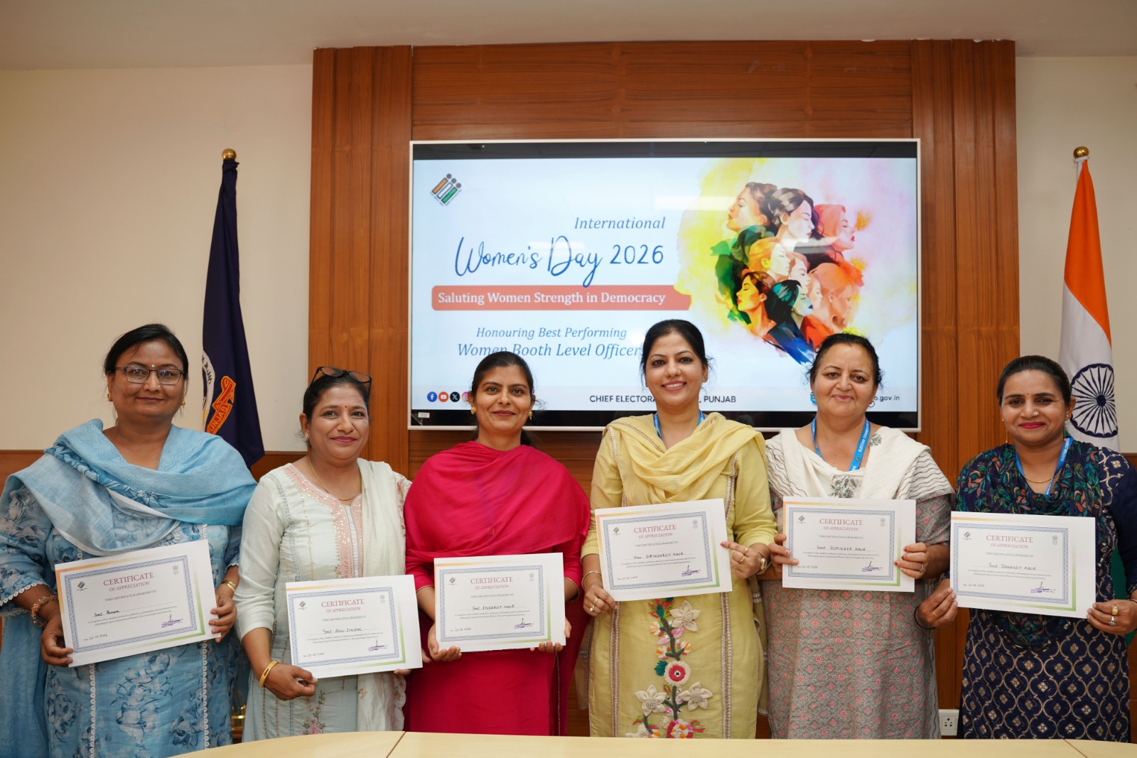 ਅੰਤਰਰਾਸ਼ਟਰੀ ਮਹਿਲਾ ਦਿਵਸ ਮੌਕੇ, ਜ਼ਮੀਨੀ ਪੱਧਰ ‘ਤੇ ਚੋਣ ਪ੍ਰਕਿਰਿਆ ਨੂੰ ਮਜ਼ਬੂਤ ਕਰਨ ਵਿੱਚ ਅਹਿਮ ਭੂਮਿਕਾ ਨਿਭਾਉਣ ਵਾਲੀਆਂ ਮਹਿਲਾ ਬੂਥ ਲੈਵਲ ਅਫਸਰਾਂ (ਬੀਐਲਓਜ਼) ਦੇ ਸਮਰਪਣ ਨੂੰ ਮਾਨਤਾ ਅਤੇ ਸਨਮਾਨ ਦੇਣ ਲਈ ਪੰਜਾਬ ਦੇ ਸਾਰੇ ਜ਼ਿਲ੍ਹਿਆਂ ਵਿੱਚ ਵਿਸ਼ੇਸ਼ ਸਮਾਗਮ ਕਰਵਾਏ ਗਏ।