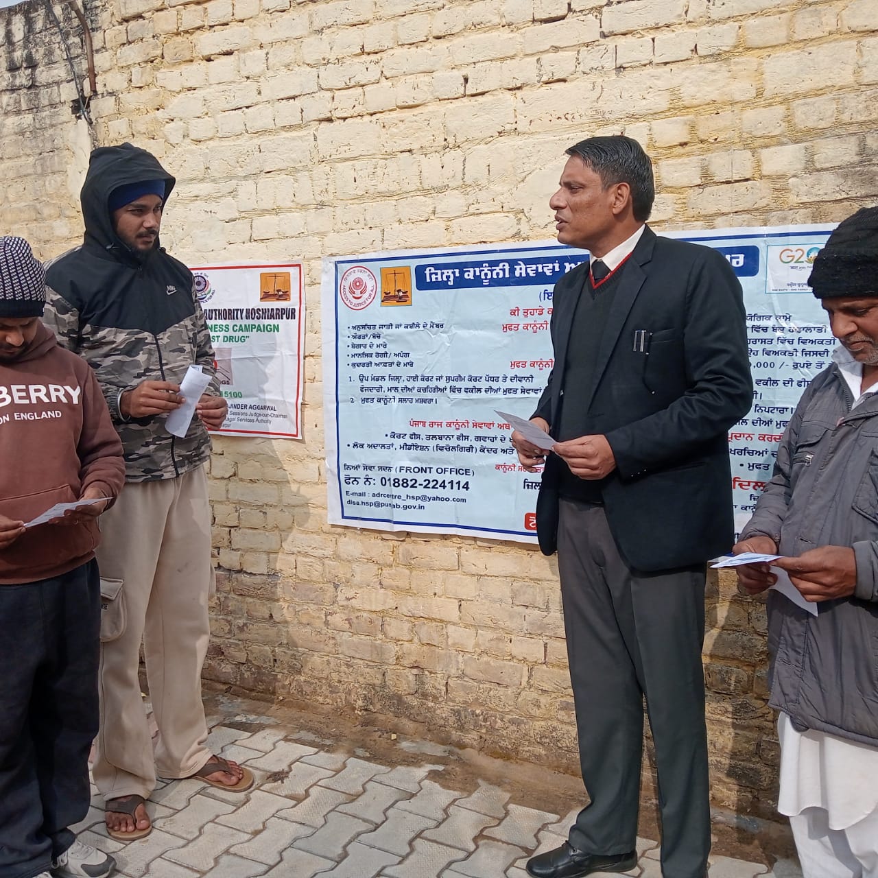 ਜ਼ਿਲ੍ਹਾ ਕਾਨੂੰਨੀ ਸੇਵਾਵਾਂ ਅਥਾਰਟੀ ਹੁਸ਼ਿਆਰਪੁਰ ਵੱਲੋਂ ਪੰਜਾਬ ਰਾਜ ਕਾਨੂੰਨੀ ਸੇਵਾਵਾਂ ਅਥਾਰਟੀ ਐਸ.ਏ.ਐਸ ਨਗਰ ਦੇ ਦਿਸ਼ਾ-ਨਿਰਦੇਸ਼ਾਂ ਅਤੇ ਜ਼ਿਲ੍ਹਾ ਤੇ ਸੈਸ਼ਨ ਜੱਜ ਰਜਿੰਦਰ ਅਗਰਵਾਲ ਦੇ ਹੁਕਮਾਂ ਦੀ ਪਾਲਣਾ ਕਰਦੇ ਹੋਏ ਸਕੱਤਰ, ਜ਼ਿਲ੍ਹਾ ਕਾਨੂੰਨੀ ਸੇਵਾਵਾਂ ਅਥਾਰਟੀ ਨੀਰਜ ਗੋਇਲ ਵੱਲੋਂ ਜ਼ਿਲ੍ਹਾ ਹੁਸ਼ਿਆਰਪੁਰ ਅਤੇ ਸਬ-ਡਵੀਜ਼ਨਾਂ ਦੇ ਵੱਖ-ਵੱਖ ਪਿੰਡਾਂ ਵਿੱਚ ਜਾਗਰੂਕਤਾ ਮੁਹਿੰਮ ਚਲਾਈ ਜਾ ਰਹੀ ਹੈ।